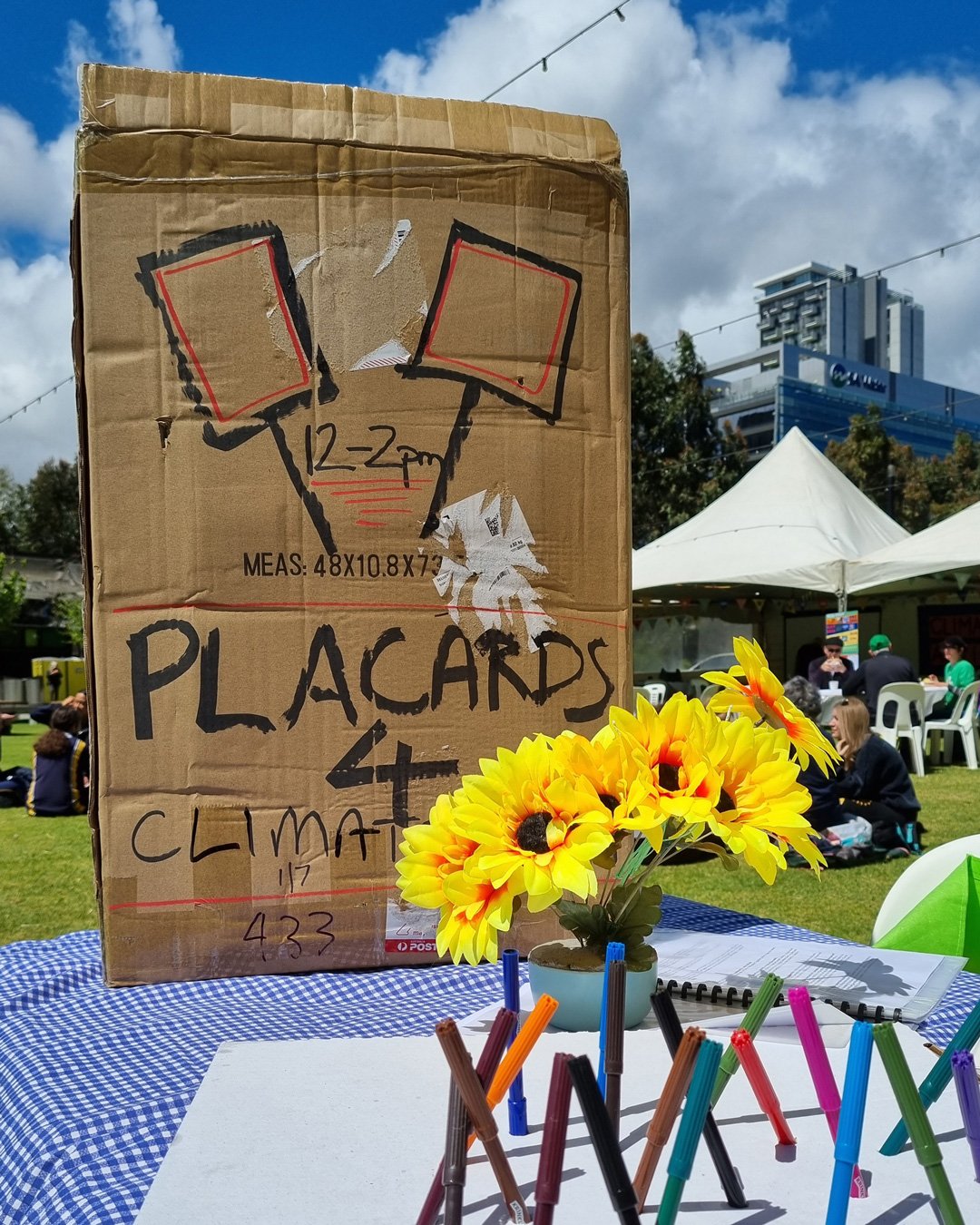 I had a table in the square after the SS4C March for donations of unwanted placards to be made. Special thanks to the Festival of Climate Action for giving me a spot next to the Food Trucks.