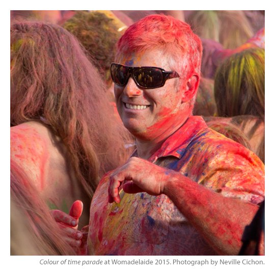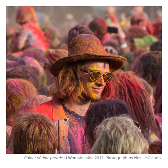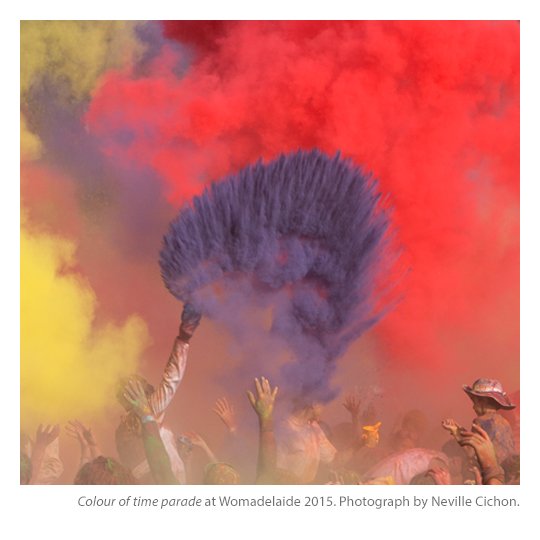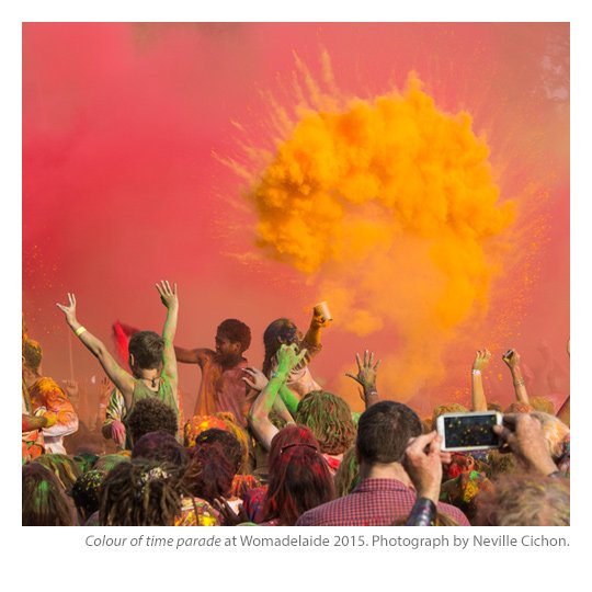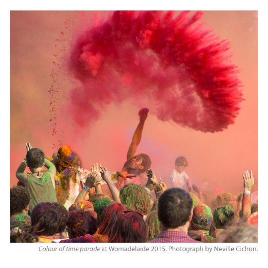 An extremely colourful experience at Womadelaide as Artonik presented a reinvention of India’s traditional Holi festival. The Colour of Time parade featured vibrant colour powder that was thrown into the air to music and gathered on all within range.