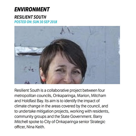 Barry Mitchell interviewing Nina Keath about Resilient South and southern climate change challenges. Go to Barometer page (13 minutes).